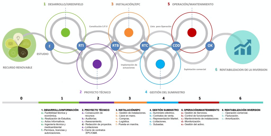 El Desarrollo de los proyectos de energía renovable que realizamos abarcan las siguientes etapas: